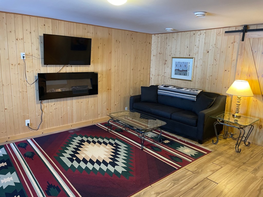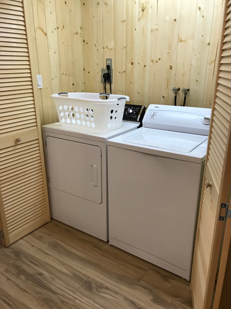 Comfortable 2 storey (2000 sq ft) 4 bedroom, 2 bath cottage sleeps 8. New kitchen (electric stove, fridge, dishwasher, microwave, coffee maker, toaster, slow cooker, blender, electric kettle), finished basement (games room, washer/dryer, bunk room and bathroom), 2 living areas with satellite or Chromecast programming TVs, large sundeck on main floor and at waterfront, walk out access to lake from ground level. Wood burning stove in living room, electric fireplace in family room. Bell satellite and unlimited wi fi.
